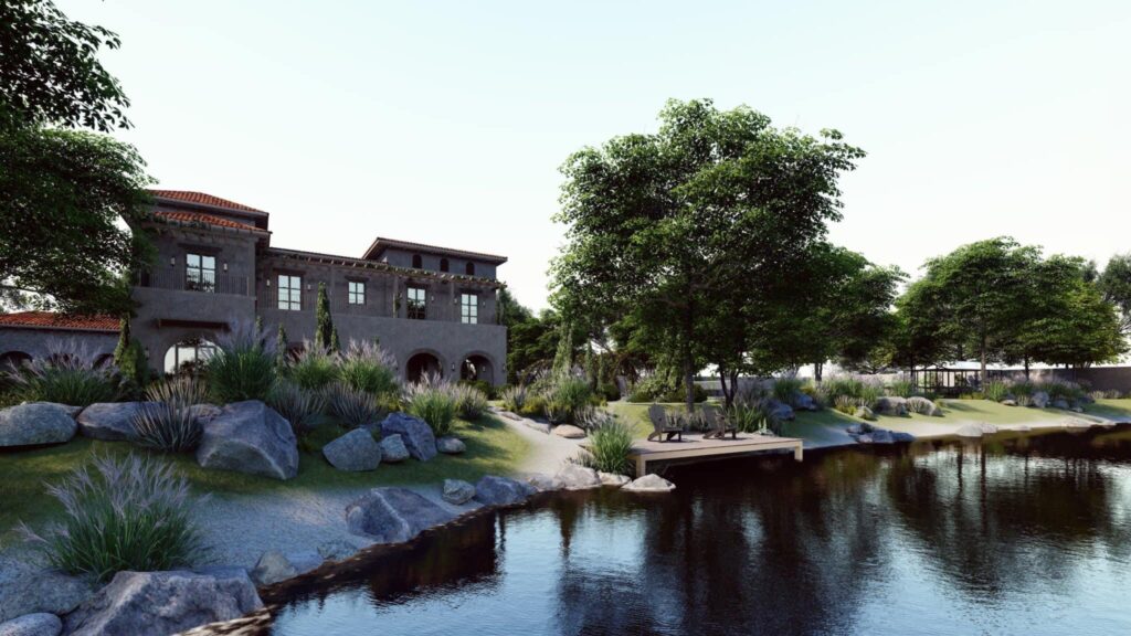 - Hồ nước tự nhiên trước nhà cho hoạt động câu cá (khách tự chuẩn bị cần câu).