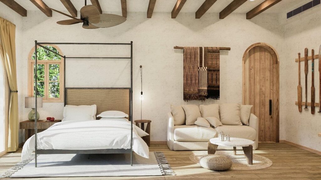 - 5 phòng ngủ khép kín có điều hòa, mỗi phòng có 1 giường đôi 1m6 (1pn tầng 1 và 4pn tầng 2 có ban công thông nhau view hồ)
