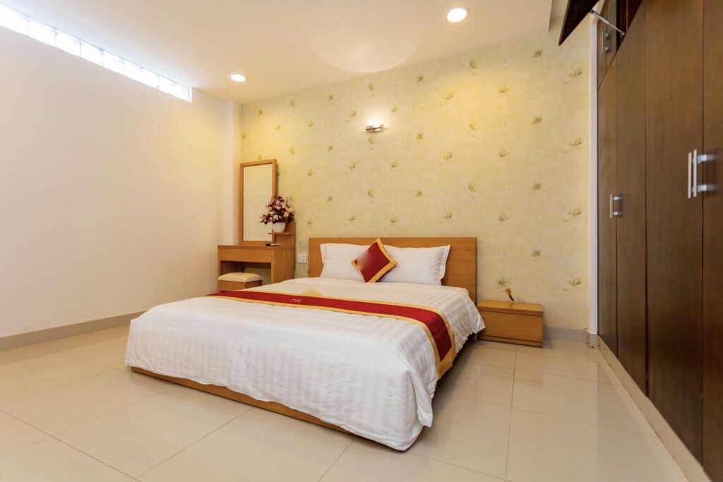 • Phụ phí dọn dẹp bắt buộc 300k, phu thu nước nóng: 300k. Miễn phí bé dưới 5 tuổi