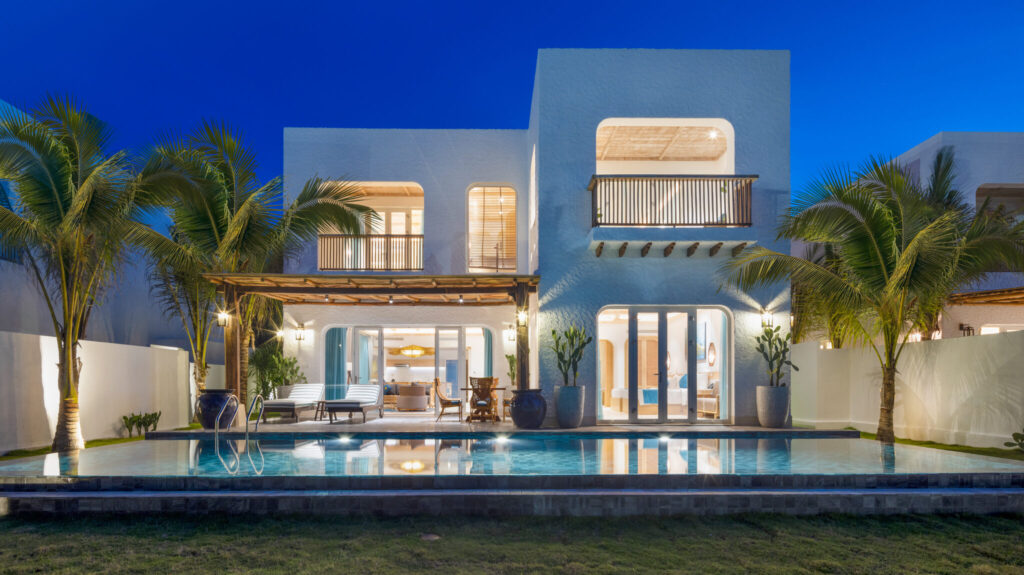 Mỗi căn biệt thự đều có một bể bơi riêng và tầm nhìn hướng về phía biển cả bao la. Chỉ cần thức giấc du khách đã có thể nhẹ nhàng đặt chân lên triền cát vàng và chạm tay vào làn nước trong xanh của đại dương.