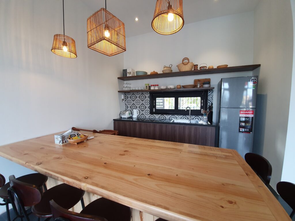 - Ngoài ra, khu nhà bếp cũng đầy đủ các trang thiết bị hiện đại để nhóm bạn hoặc gia đình có thể cùng nhau nấu ăn.