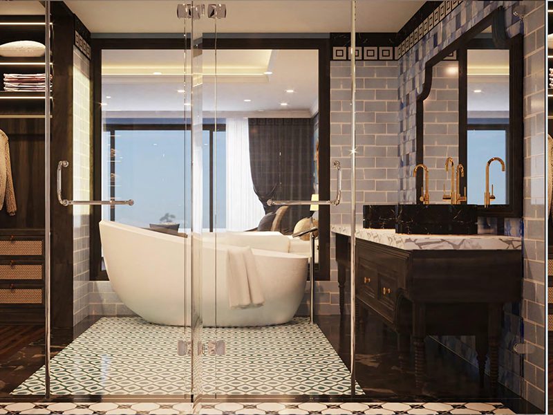 • Thiết kế 2 tầng gồm 2 phòng ngủ: mỗi tầng 1 phòng ngủ mở view kính hướng ra đồi thông.