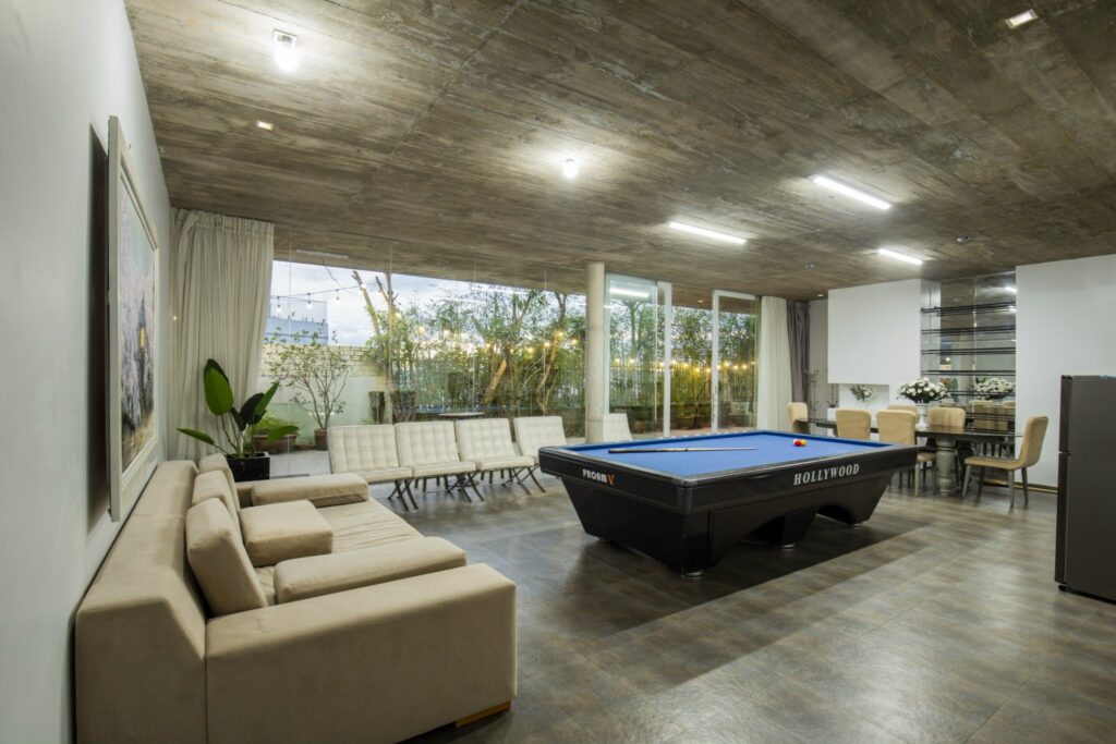 _ Đầy đủ tiện nghi wifi, TV , tủ lạnh, lò vi sóng, bếp nấu, sân vườn BBQ…