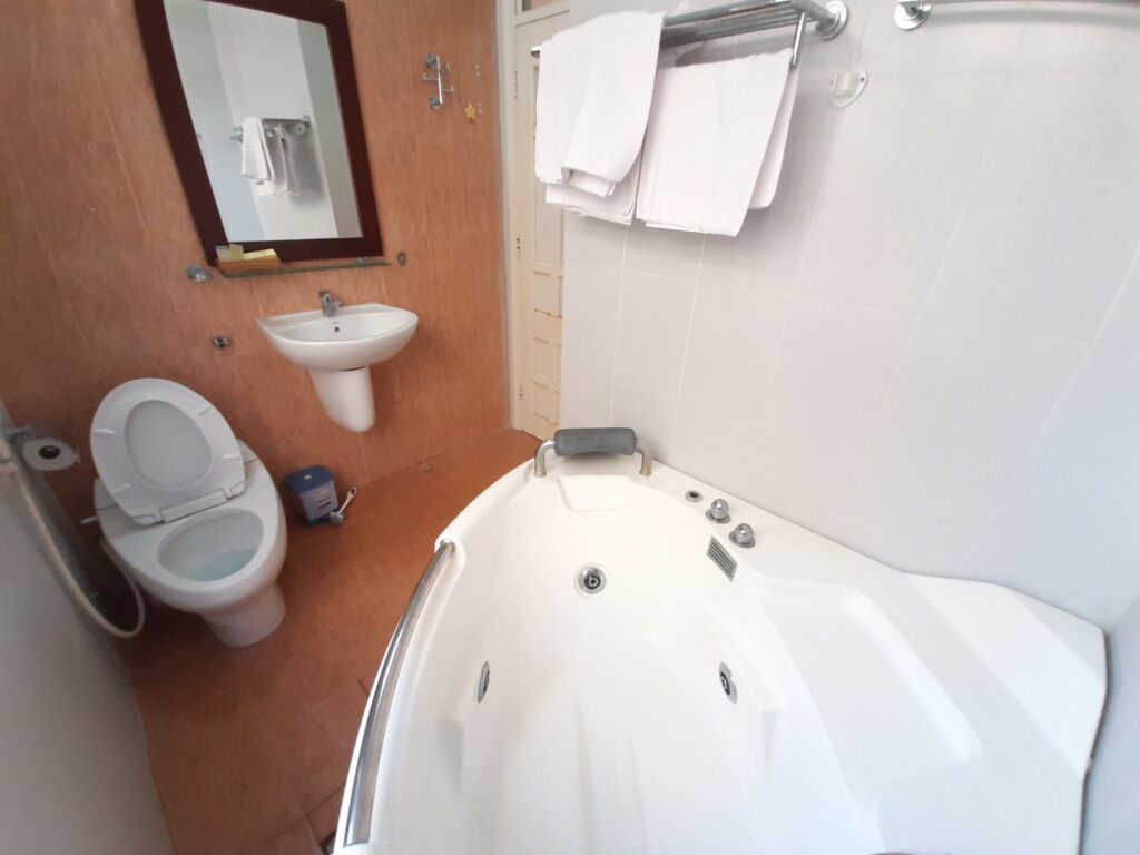 – 3 nhà vệ sinh có bình nóng lạnh, khăn mặt, khăn tắm, sữa tắm, dầu gội đầu, kem đánh răng và bàn chải đánh răng đầy đủ.