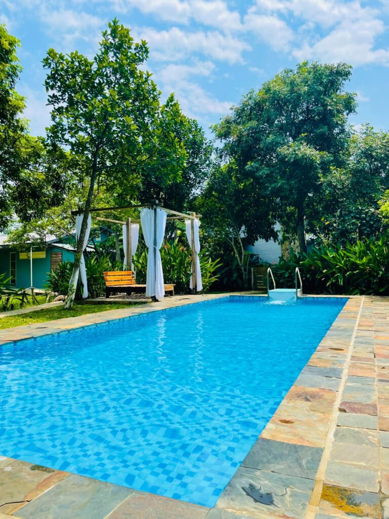 ☘️Bể bơi tiêu chuẩn sử dụng riêng biệt. Khu vực bàn ăn BBQ và hố lửa trại riêng biệt.