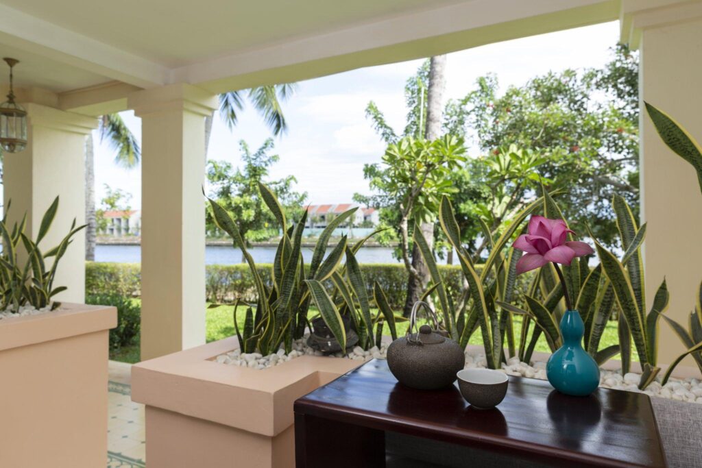 Gồm: 93 phòng nghỉ và dãy phòng với thiết kế chia cấp với hiên ban công, Thẩm mĩ viện, Lớp dạy nấu ăn, ngôn ngữ, vẽ tranh và đèn lồng của người Việt Nam, Tổ chức các chuyến du ngoạn và tham quan, Bể bơi và bể bơi dành cho trẻ em được bao quanh trong sân vườn, Năm lựa chọn ăn uống, Các chuyến đi thuyền trên sông Thu Bồn