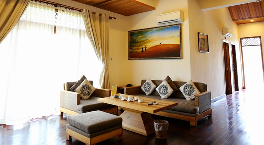 - 1 khối President Villa có 1 phòng Masterbed, 1 phòng Twinbed, phòng khách, phòng ăn, bếp, gác lửng ngắm biển, hồ bơi riêng.