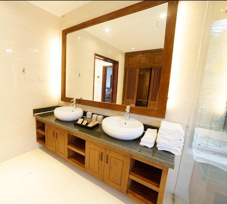 - Villa setup đầy đủ đồ cá nhân như khăn tắm, khăn mặt, kem đánh răng