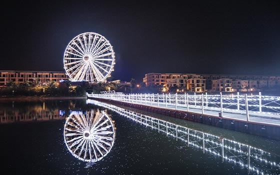 Ngắm nhìn trọn không gian bao la, xinh đẹp của biển Sầm Sơn. Vòng quay ánh sáng có đường kính 34m, với 24 cabin và phục vụ đến 150 khách/lượt chơi.