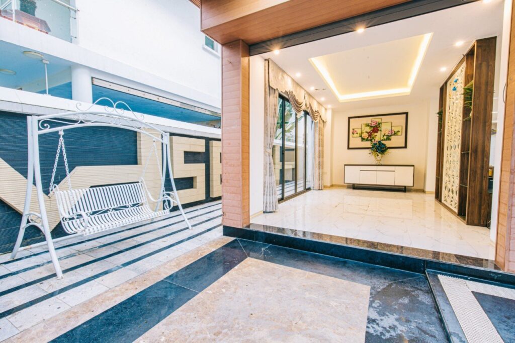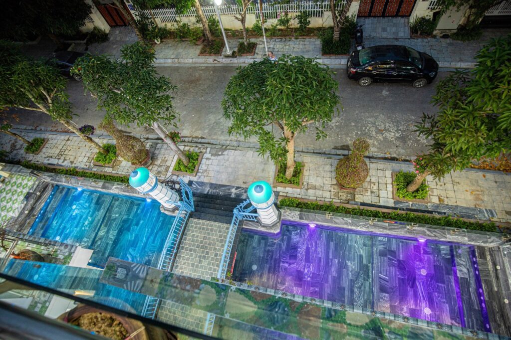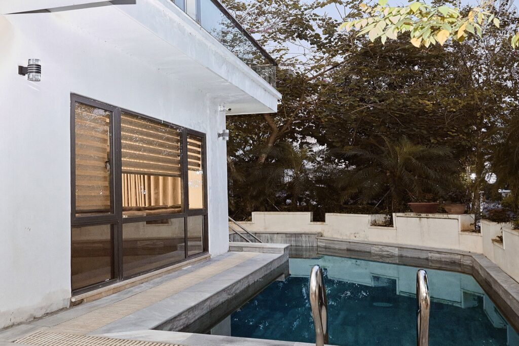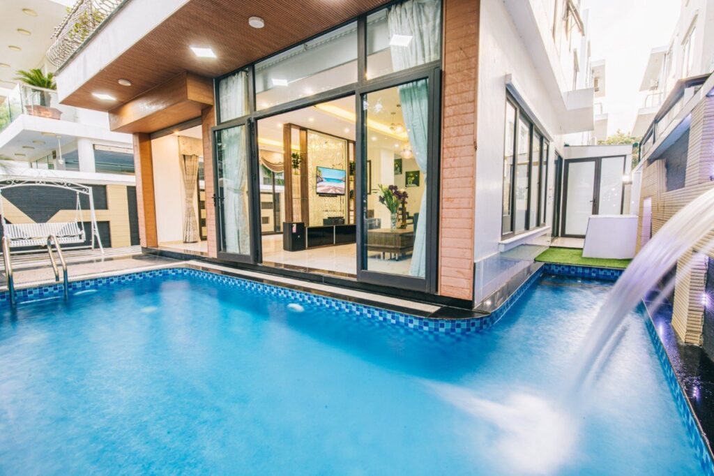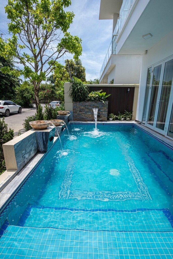 Tùy thuộc vào căn mà sẽ có Villa có bể bơi riêng hoặc không có bể bơi. Bể bơi được xây dựng theo ý của gia chủ. Nhưng đều hướng đến sự thoải mái, sở thích của khách hàng. Diện tích bể bơi khoảng 10m2 – 30m2 tùy căn. Đa phần khách hàng thường lựa chọn Villa có bể bơi riêng bởi giá thuê cũng không chênh lệch quá nhiều so với Villa không có bể bơi.