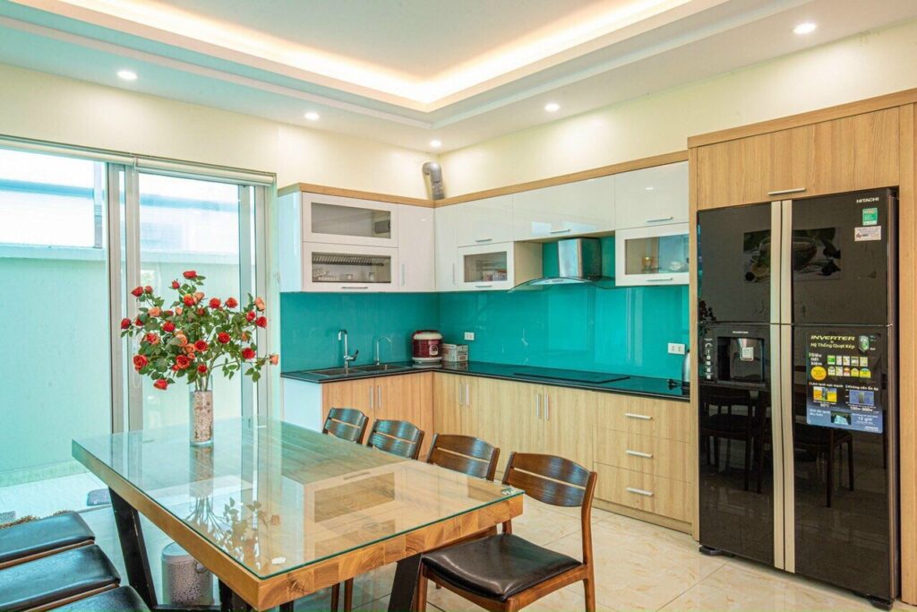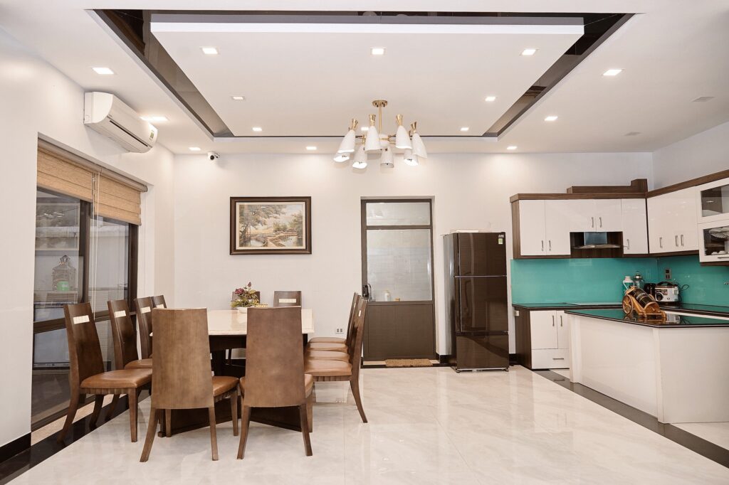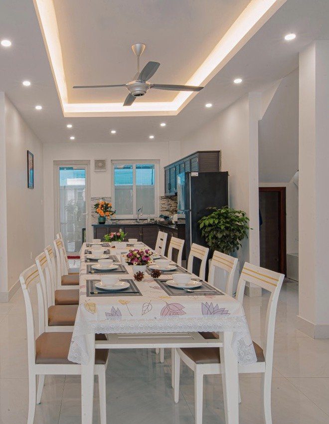 + 1 phòng bếp: Bộ bàn ăn 18 ghế, có bàn riêng cho trẻ em