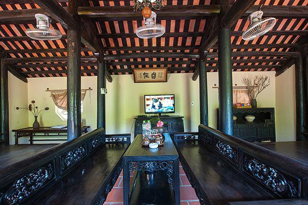 Lối đi lát gạch đỏ mộc mạc dẫn du khách vào Xóm Nhà Cổ, với những ngôi nhà có niên đại hàng trăm năm tuổi; được đặt tên theo lối dân dã: nhà Địa Chủ, Phú Ông, Trung Nông, Thầy Đồ xưa kia tại các vùng đất cổ Nam Định, Bắc Ninh . Mỗi cụm nhà được thiết kế theo lối kiến trúc giản dị, mái ngói xưa, cột trụ gỗ, vỉ kèo…, với đầy đủ cả nhà chính , nhà ngang, sân vườn, hàng rào dâm bụt…. khiến cho du khách đi nghỉ dưỡng mà cảm giác như được về quê.