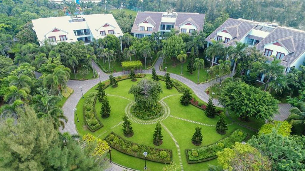 Thiết kế được chia thành nhiều khu vực rõ ràng đã tạo nên một tổng thể hài hòa. Kiến trúc cân đối: hồ bơi nước ngọt, hồ bơi nước mặn, khu trồng hoa tươi, khu nghỉ dưỡng… Khi rảo bước thật chậm ở khu nghỉ dưỡng còn khiến bạn như đang lạc bước vào một thành phố nhỏ vậy.