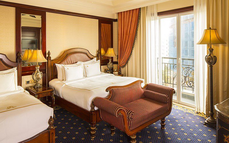 Kiến trúc của khách sạn mang đậm nét phương Tây cổ điển theo kiểu những tòa lâu đài nguy nga thời nữ hoàng Victoria. 350 phòng nghỉ với diện tích đa dạng được trang trí bao bọc bằng giấy dán tường viền gỗ rất trang nhã, điểm thêm những bức tranh nổi tiếng thời nữ hoàng Victoria. Tiện nghi trong phòng được trang bị cao cấp theo tiêu chuẩn 5 sao với phòng tắm rộng rãi và bồn tắm riêng biệt.