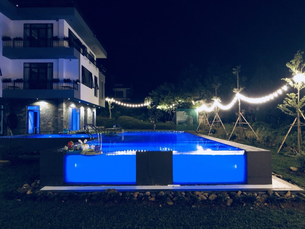 + Bể bơi riêng ngoài trời (bể người lớn rộng 5.5m, dài 18m, sâu nhất 1m7, bể trẻ con 4m dài 5m sâu 50cm)