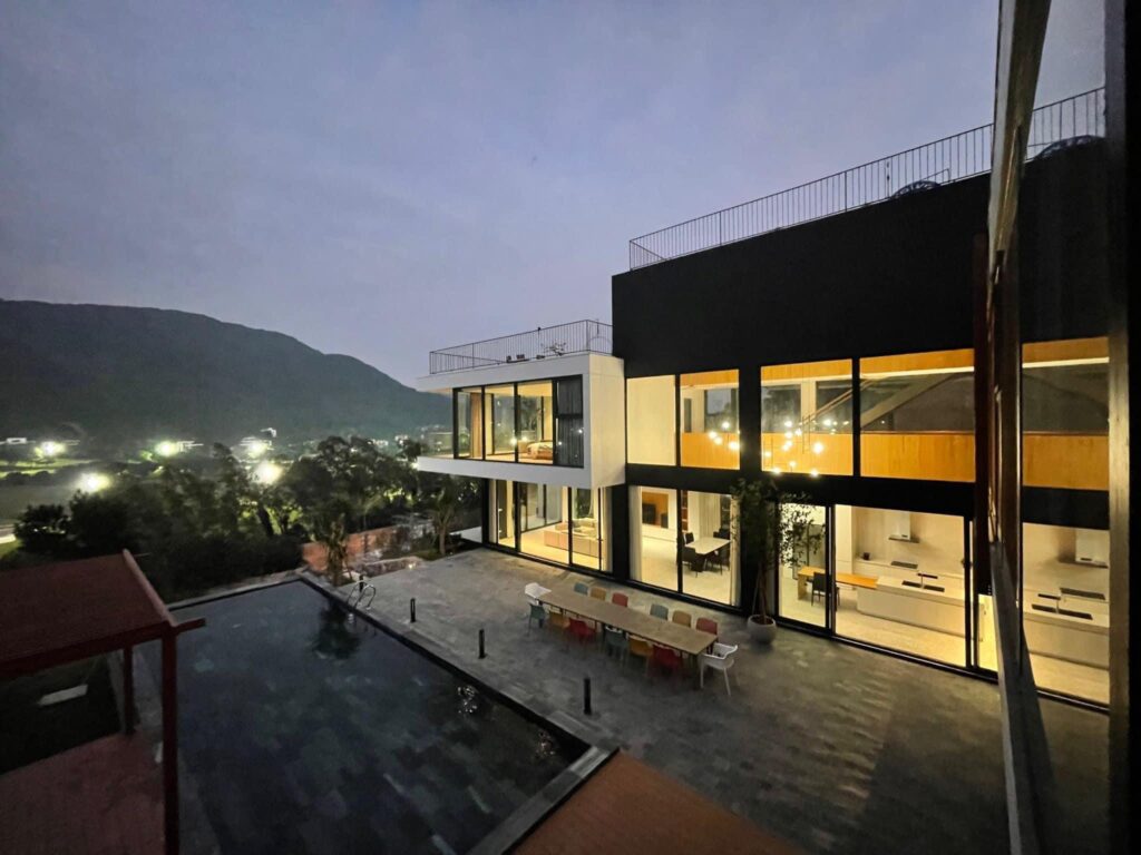 – Bể bơi riêng biệt, đồi thông, vườn đào là góc “sống ảo” cực chất