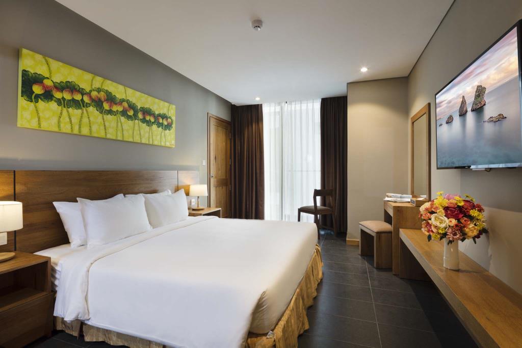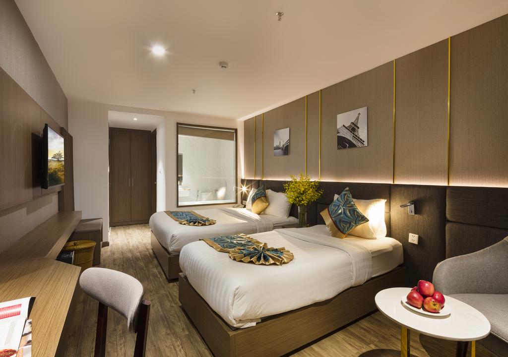 Ngoài niềm tự hào về vị trí thuận lợi, lối kiến trúc riêng tư thanh lịch, các phòng ngủ đều được trang bị nội thất hiện đại cao cấp, sắp xếp ấn tượng, đặc biệt tất cả các phòng đều có ban công đón gió thông thoáng để du khách tận hưởng không gian yên lặng riêng biệt.