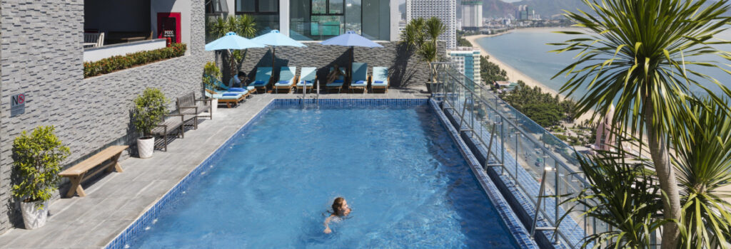 Trong khoảng thời gian lưu trú, du khách sẽ tận hưởng và trải nghiệm nhiều dịch vụ độc đáo như bể bơi vô cực tại sân thượng, trung tâm thể dục, phòng xông hơi và khám phá sự kết hương vị ở các nước phương Tây, Châu Á tại tầng cao nhất .Tất cả những tiện nghi đều được dành riêng cho du khách hòa mình vào thành phố Nha Trang và bờ biển đẹp tuyệt vời.