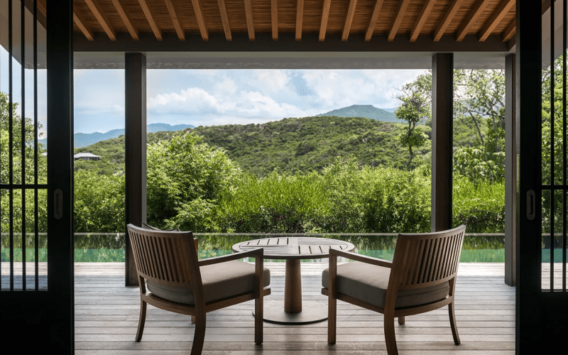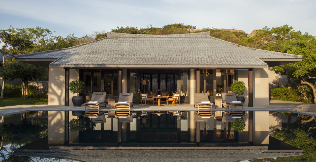 Mountain Pavilions: Số lượng 02 căn. Diện tích mỗi căn là 95m2, có hướng nhìn ra quang cảnh vườn Quốc gia Núi Chúa. Nội thất – tiện nghi nổi bật gồm giường đôi, ghế sofa, bộ bàn ghế, bàn trang điểm, bồn tắm nằm, phòng tắm đứng, hiên tắm nắng.
