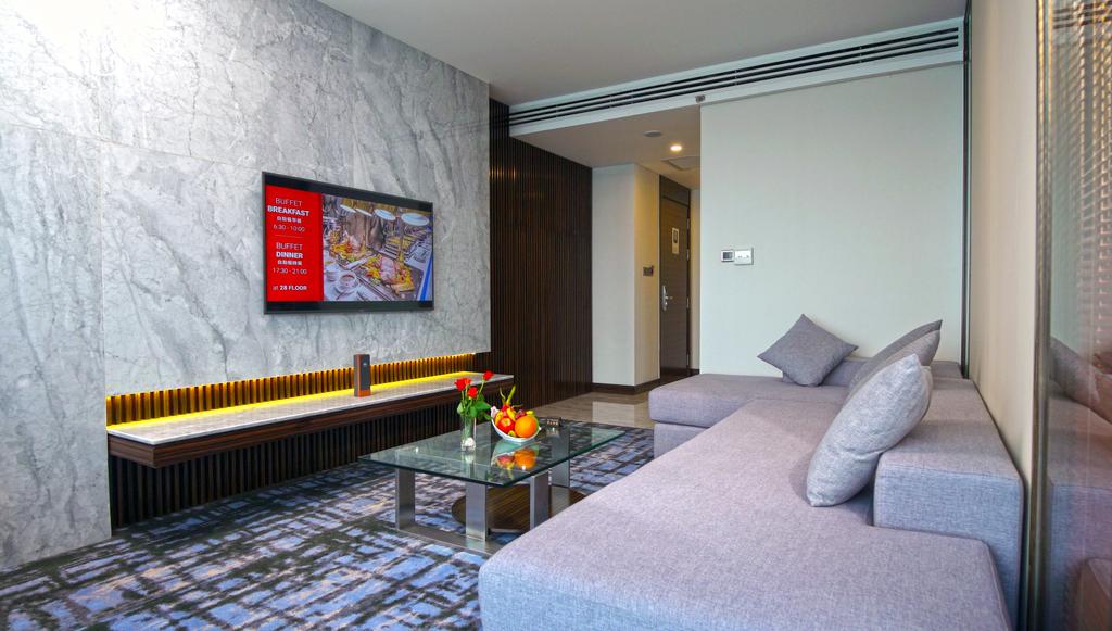 - Suite gia đình (Family Suite): phòng có diện tích khoảng 50m2, có ban công, hướng biển, phòng ở được tối đa 03 người lớn hoặc 02 người lớn và 02 trẻ em dưới 12 tuổi