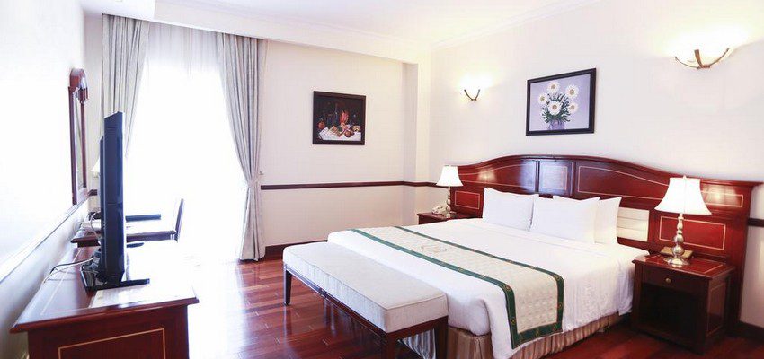 - Junior Suite: Diện tích khoảng 54 m2, có ban công riêng. Phòng có 01 giường đôi, có thể kê thêm tối đa 01 giường phụ. Phòng tắm có bồn tắm và buồng tắm đứng vòi hoa sen. Phòng có khu vực tiếp khách rộng rãi.
