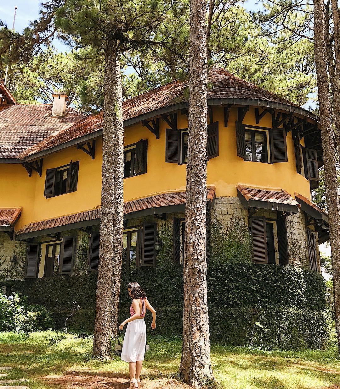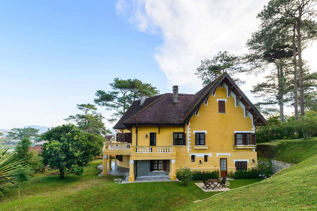 Ngay chiếc cổng chào nằm dưới chân của ngọn đồi cũng đã thể hiện rõ vẻ cổ kính với thiết kế đơn giản, nhỏ và mang đậm “nét cũ kỹ”. Bên trong không gian là thiết kế mở, cách bài trí cũng hết sức giản dị với đầy đủ tiện nghi từ sofa, bàn ăn, nhà bếp cho đến phòng khách…tất cả vẫn giữ nguyên kiến trúc từ thời Pháp và được nhấn nhá thêm một vài chi tiết hiện đại. Tuy có chút dáng dấp hiện đại nhưng nhờ nàn tay tài hoa “decor có gu” với trang thiết bị giả cổ “siêu chất” khiến cho tổng thể kiến trúc không hề bị phá vỡ.