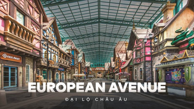 Lấy bối cảnh Châu Âu thời trung cổ, Đại Lộ Châu Âu mang đến cho du khách cái nhìn tổng quan về cuộc sống của người dân Châu Âu với những hoạt động đặc sắc như mua sắm và check-in tại Chợ Phiên Copenhagen, Quảng Trường Phượng Hoàng Lửa; đây hứa hẹn sẽ là khu vực dành cho các tín đồ “sống ảo” với các khung cảnh thơ mộng, không góc chết.