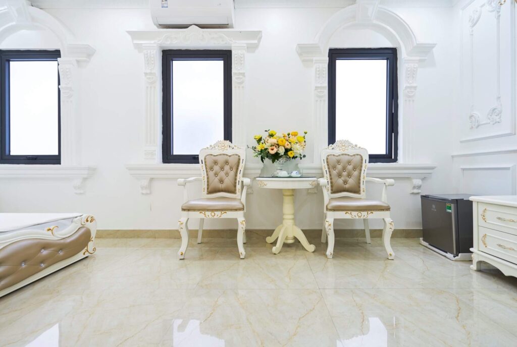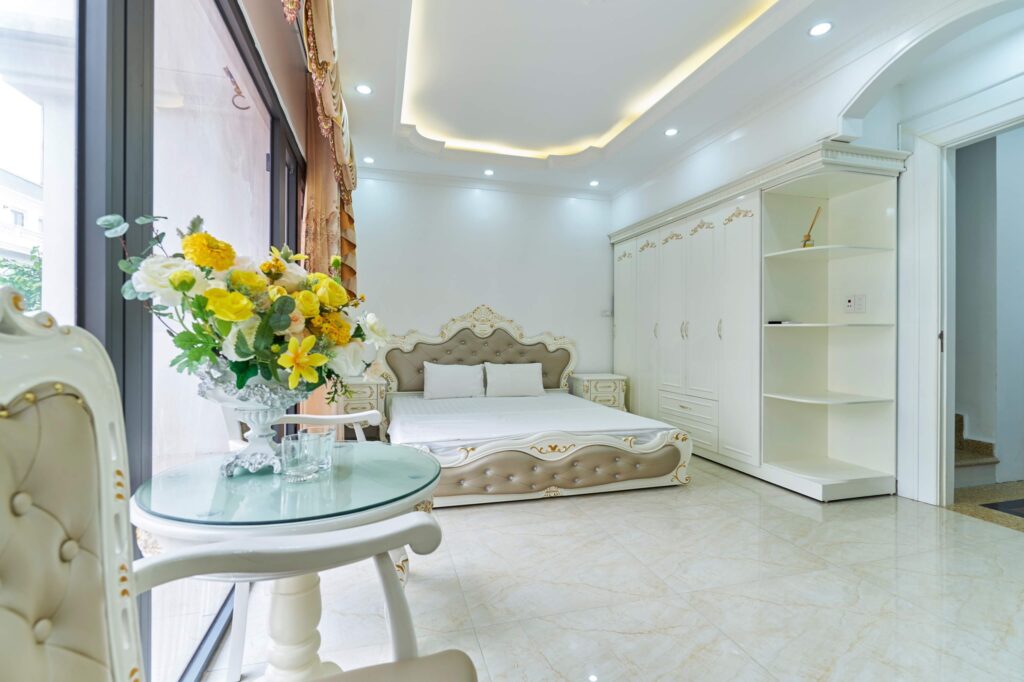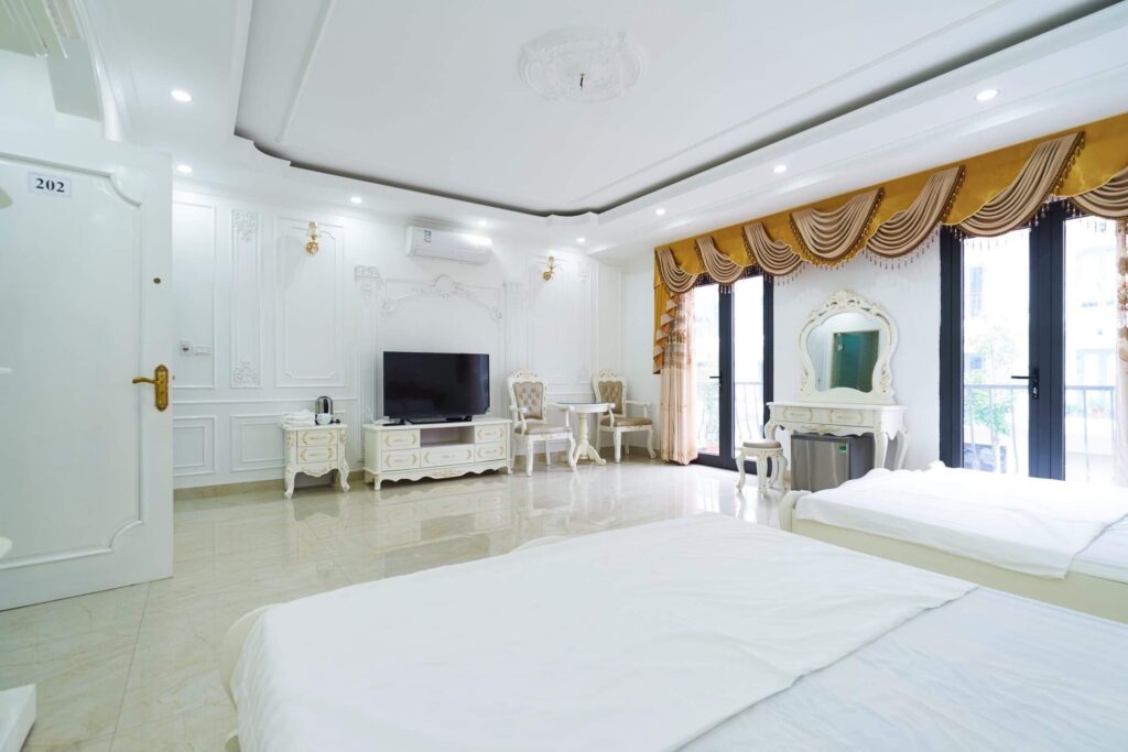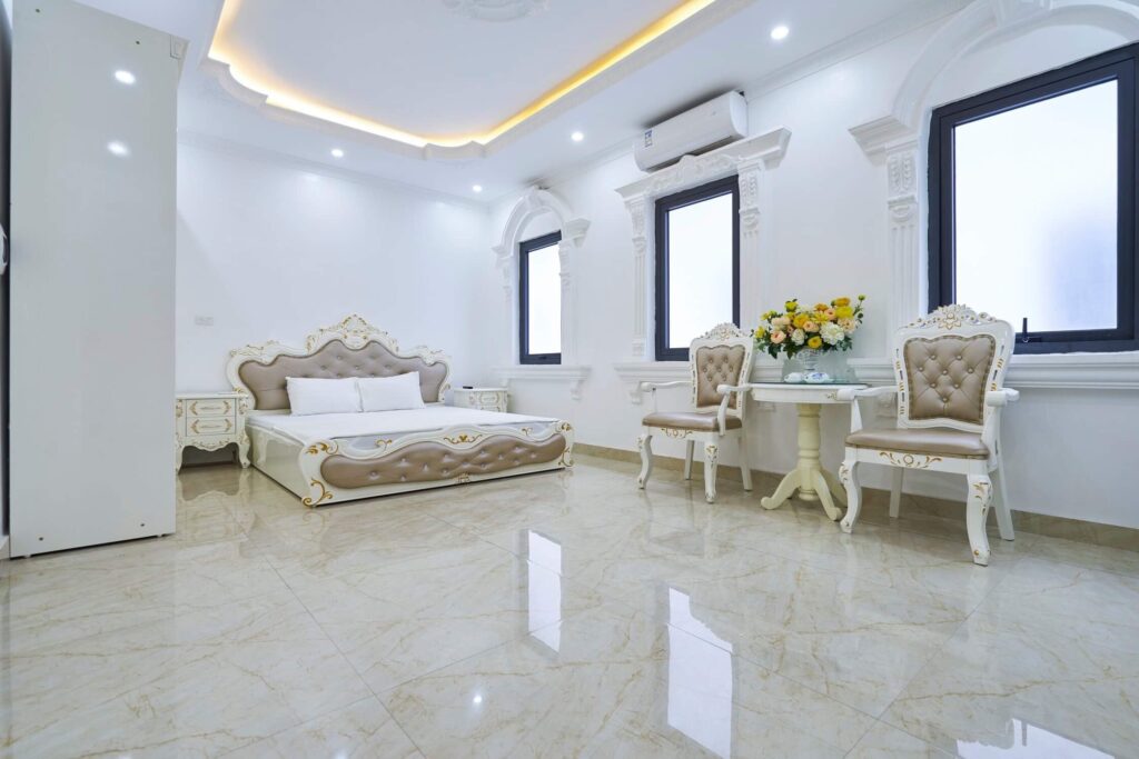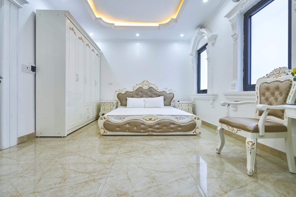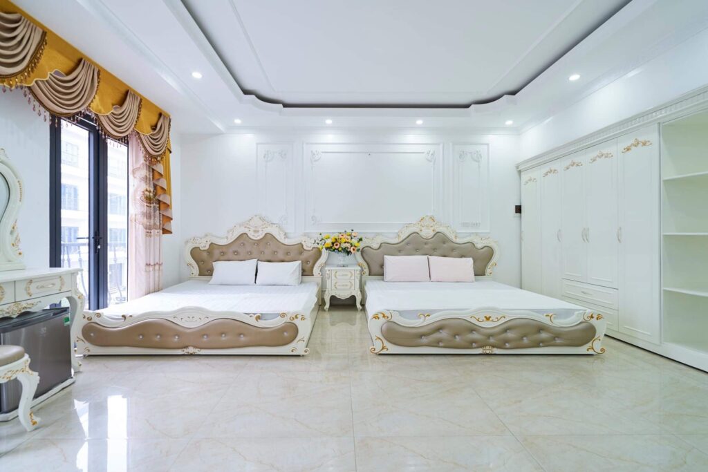 • Các tầng trên mỗi tầng có 2 phòng ngủ tổng cả căn là 5 phòng ngủ, riêng tầng 2 có 1 phòng ngủ với 2 giường đôi 1m8