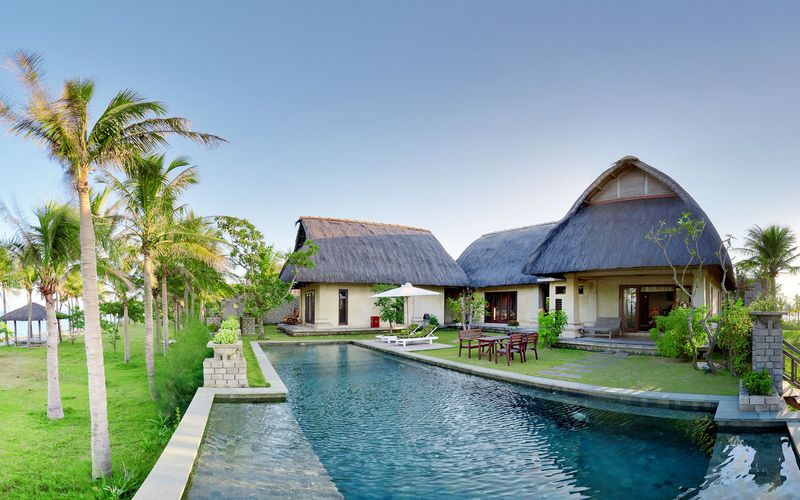 Diện tích căn biệt thự 02 phòng ngủ là 320m2 gồm hồ bơi, khu vườn, diện tích phòng là 65m2, mỗi phòng có 01 giường đôi (1,8mx2m).