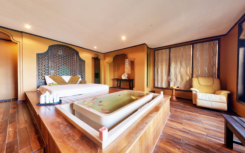 – Hạng Deluxe Suite Pool/Ocean View: Gồm 09 phòng. Diện tích mỗi phòng là 40m2, có sân thượng/ban công. Phòng gồm 01 giường đôi (1.8mx2m), phòng tắm với bồn tắm nằm. P