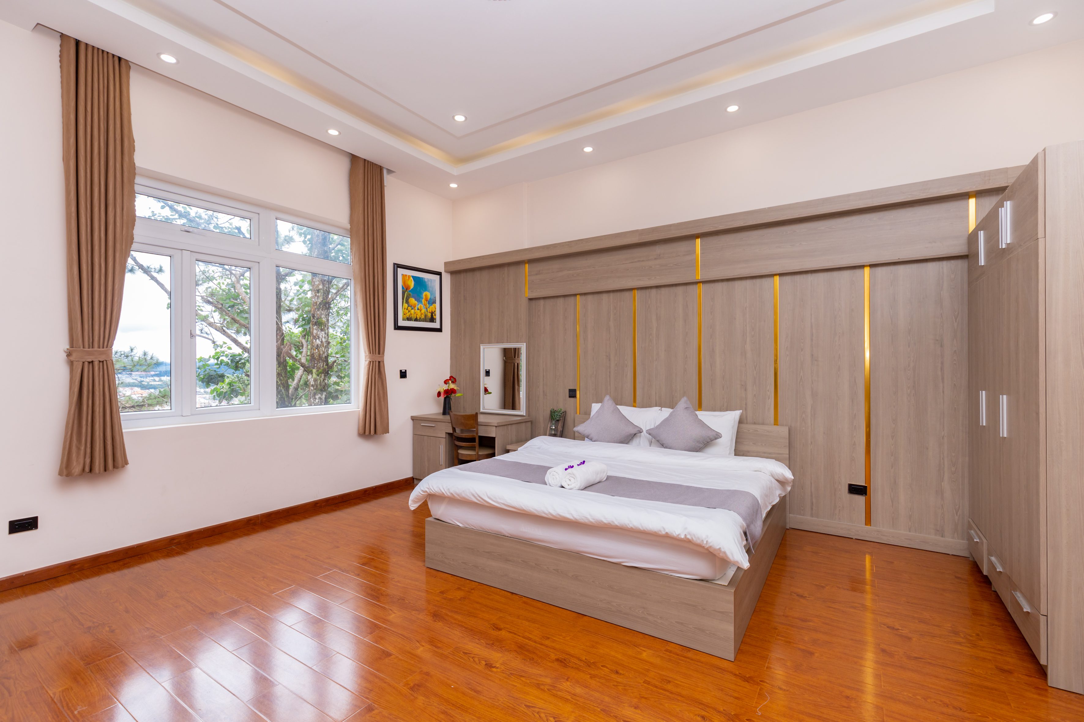 Với không gian cực kỳ yên tĩnh, lãng mạn và thoáng đãng. Mộc Nhiên Villa Đà Lạt thích hợp với những ai muốn tìm sự bình yên, hoà mình vào thiên nhiên, cây cỏ, núi rừng. Tất cả các phòng tại villa đều có cửa sổ thoáng mát, ánh sáng full phòng, view nhìn ra rừng thông.