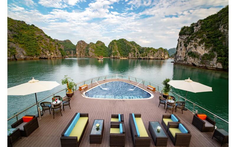 Du thuyền Vịnh Hạ Long – Lan Hạ – Cát Bà 5 sao đẹp nhất, có bể bơi, sục Jacuzzi: du lịch nghỉ dưỡng, tổ chức sự kiện, hội họp, tiệc cưới, checkin sang chảnh.