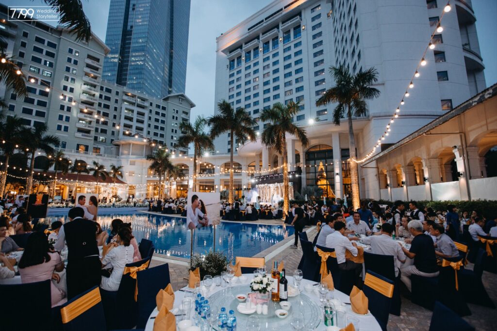 Trong khuôn viên xanh mát đầy thơ mộng, Serenity – bể bơi 5 sao ngoài trời lớn nhất Hà Nội – mang đến không gian tiệc cưới mở lãng mạn và tinh tế, đem lại những khoảnh khắc tuyệt vời bên bạn bè thân hữu và khách mời của buổi tiệc.