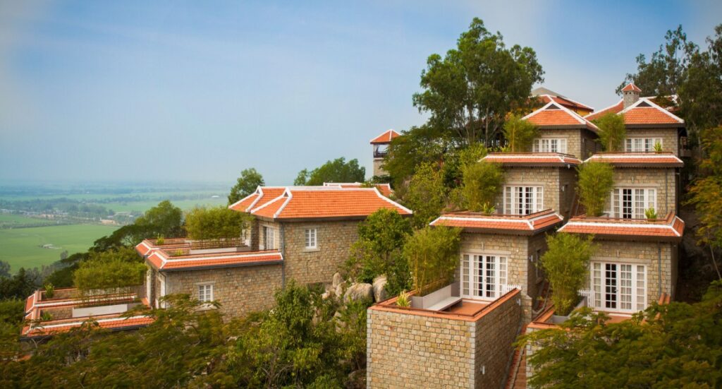 Nằm trên sườn núi Núi Sam ở trung tâm đồng bằng sông Cửu Long, Victoria Núi Sam Lodge có tầm nhìn tuyệt vời ra những cánh đồng lúa bên dưới trải dài đến tận biên giới Campuchia.