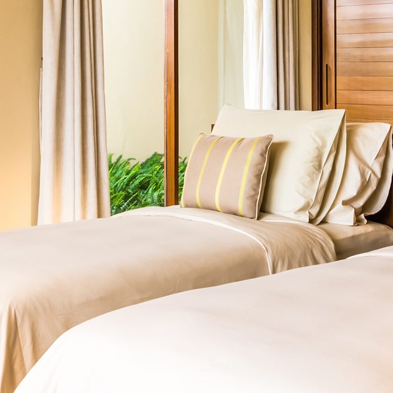 Được trang trí bằng các sắc màu đất như màu kem và nâu nhạt, tất cả các phòng gắn điều hòa đều có hồ bơi riêng, sân hiên cùng cửa sổ vách kính. Phòng cũng có khu vực ghế ngồi, két an toàn và TV truyền hình vệ tinh màn hình phẳng. Tủ lạnh mini và ấm đun nước cũng được trang bị trong phòng nhằm mang lại thuận tiện cho khách. Phòng tắm riêng đi kèm bồn tắm, tiện nghi vòi sen, đồ vệ sinh cá nhân miễn phí và máy sấy tóc.
