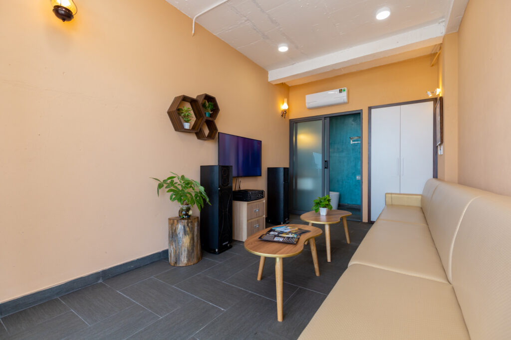 + 1 phòng khách đầy đủ tiện nghi cho cả gia đình tụ họp trò chuyện, có karaoke.