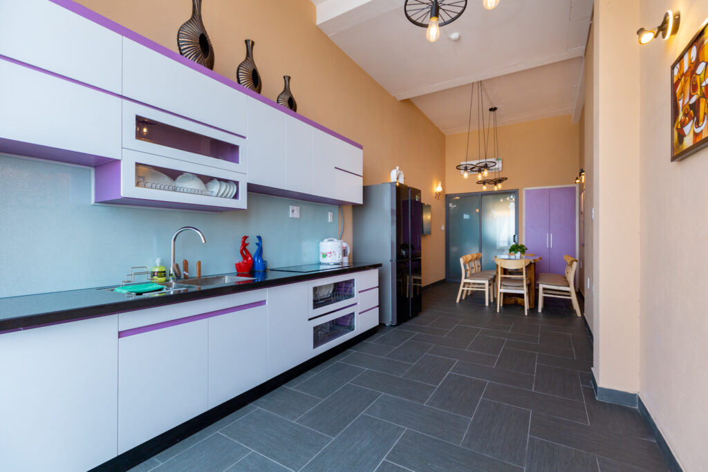 – 1 phòng khách, 1 nhà bếp trang bị đầy đủ tiện nghi – dụng cụ nấu ăn.