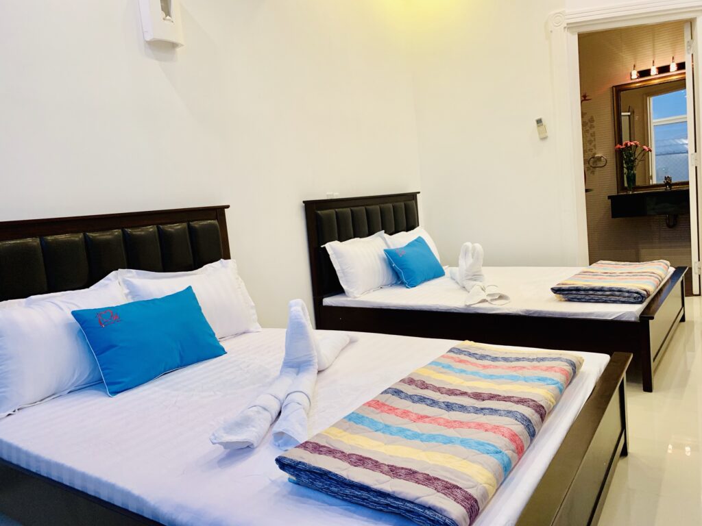 Thiết kế:  Villa có 4 phòng ngủ chính và 1 phòng ngủ phụ có 3 nệm thêm.