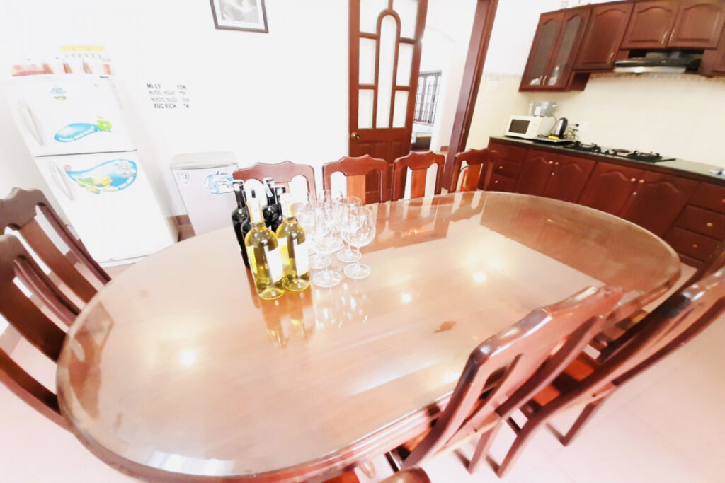 – Dụng cụ nhà bếp đầy đủ, lò nướng BBQ, bàn ăn ngoài trời.