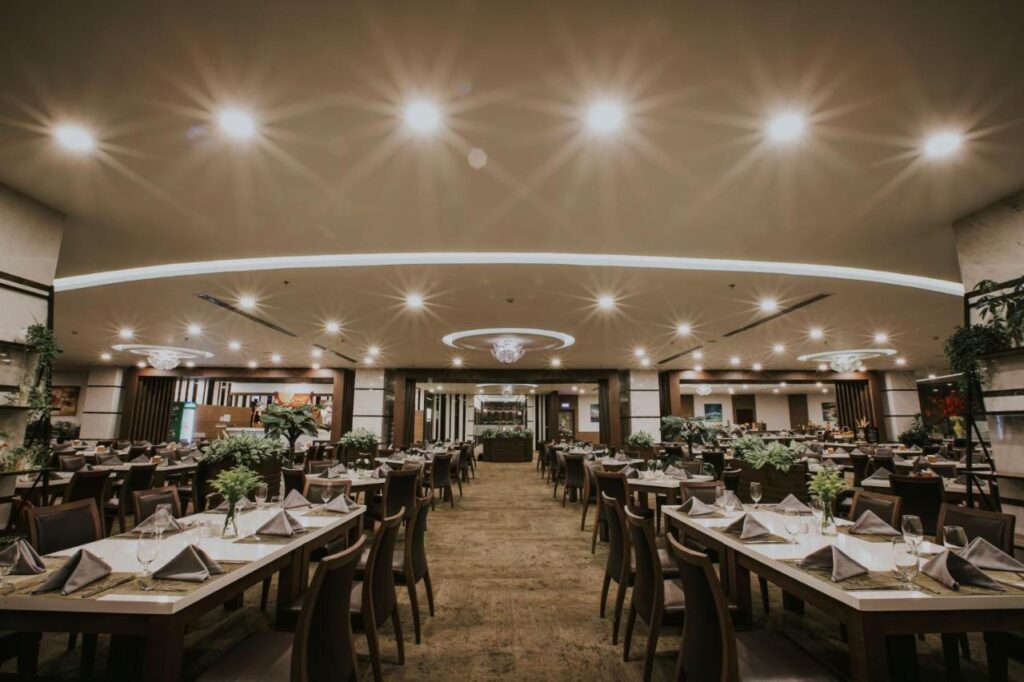 – Nhà hàng Vela: Có sức chứa khoảng 300 khách. Phục vụ theo thực đơn tự chọn hoặc gọi món. Thời gian mở cửa: từ 6h30 – 22h.