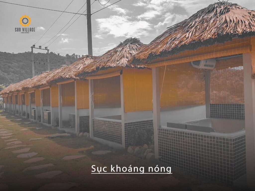 - Tới với hệ thống bể tắm bùn của Sun Village Hòa Bình du khách có thể thoải mái ngâm mình thư giãn cảm nhận từng tinh chất từ bùn thấm qua làn da, vừa có được sức khỏe lại, vừa có tinh thần thoải mái nhất cho những giờ vui chơi tiếp theo.