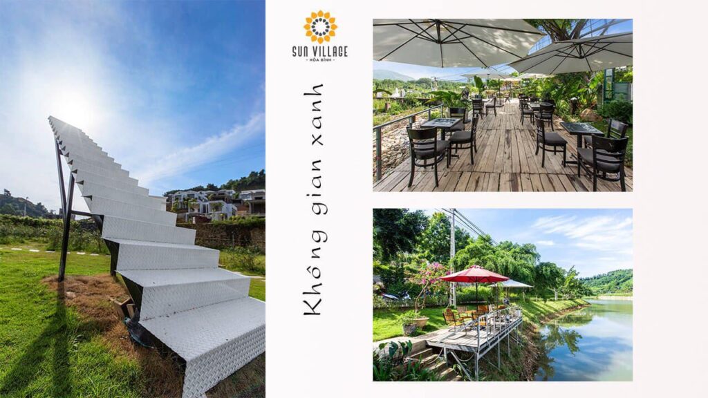Sun Village tại Xã Tân Vinh, Huyện Lương Sơn, Hoà Bình (cách Hà Nội 40km, cực gần) với thiết kế phong cách ngoại ô Mỹ siêu thanh lịch gồm từ 2 đến 4 phòng ngủ, có villa có bể bơi riêng siêu đẹp. Bên cạnh đó, quý khách còn có cơ hội trải nghiệm hoạt động đi xe đạp dạo quanh ngôi làng, ngắm đồng lúa, đạp vịt dạo quanh hồ thơ mộng, câu cá, sân chơi trẻ em,…giúp quý khách có những phút giây thư giãn, thoải mái nhất.