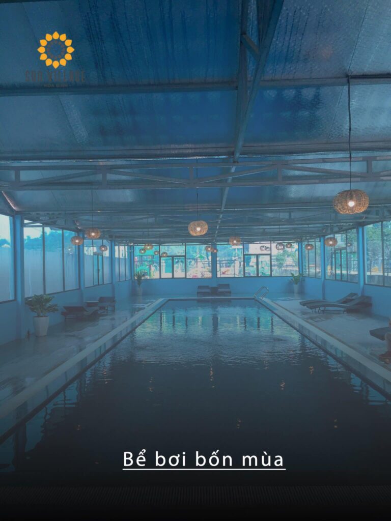 Ngoài bể bơ riêng tại villa, Sun Village có hệ thống bể bơ chung hiện đại. không những vậy bể bơi của khu nghỉ dưỡng này là bể bơi bốn mùa có thể phục vụ du khách bất cứ khi nào du khách muốn thả mình vào làn nước trong xanh.