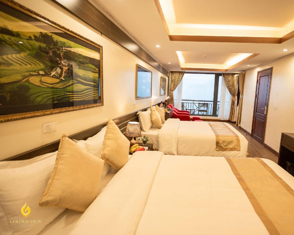 GOLDEN VIEW Hotel & Spa với diện tích gần 1000m2, mặt tiền thoáng rộng tới gần 50m được xây dựng hoàn toàn mới và đưa vào hoạt động từ tháng 5 năm 2025 với 38 phòng được chia thành 6 hạng phòng khác nhau, được thiết kế với phong cách tinh tế, lãng mạn và các tiện nghi được trang bị tốt. Tất cả các phòng có Cửa sổ lớn, Ban công hoặc sân thượng nhìn thẳng ra dãy núi Hoàng Liên Sơn hùng vĩ thung lũng Mường Hoa thơ mộng. Sẽ mang đến cho khách hàng những kỳ nghỉ thú vị và dễ chịu.