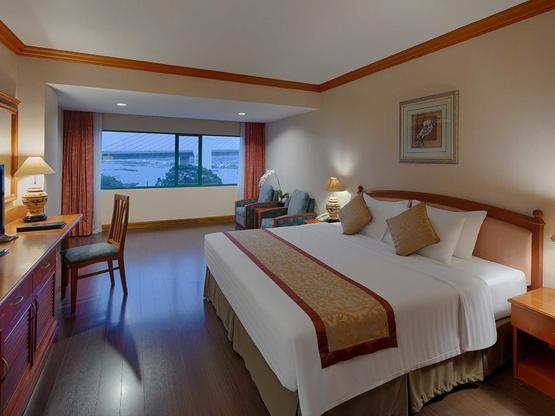 - Phòng Superior: có tầm nhìn ra một góc Vịnh Hạ Long hoặc Cầu Bãi Cháy. Diện tích: 38m2. Giường cỡ King hoặc 2 giường đơn được cung cấp và một số phòng thông nhau qua cửa nối. Giá thấp nhất từ: