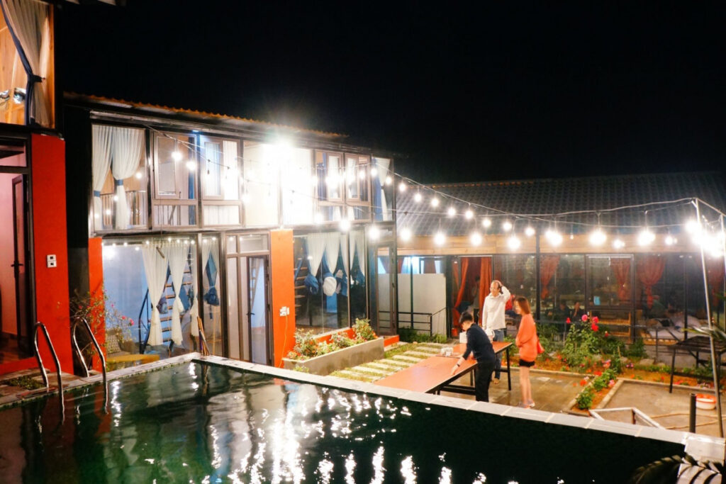 Ngoài ra Nhà Hồng còn có sân BBQ cạnh bể bơi chung với nhà Vàng, phù hợp cho từ 2-6 người