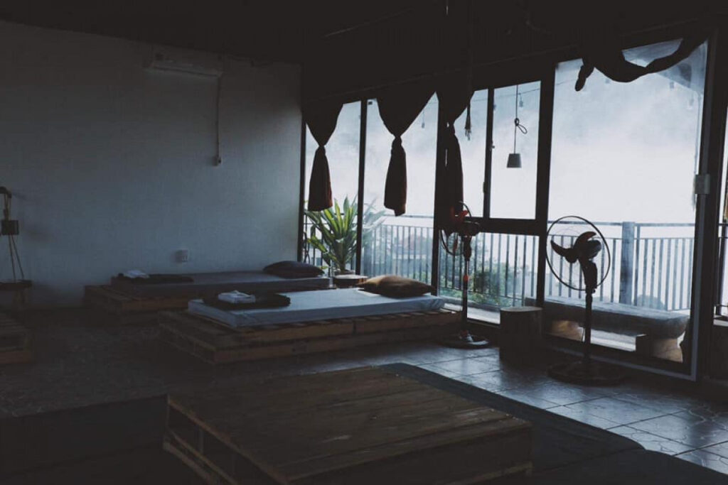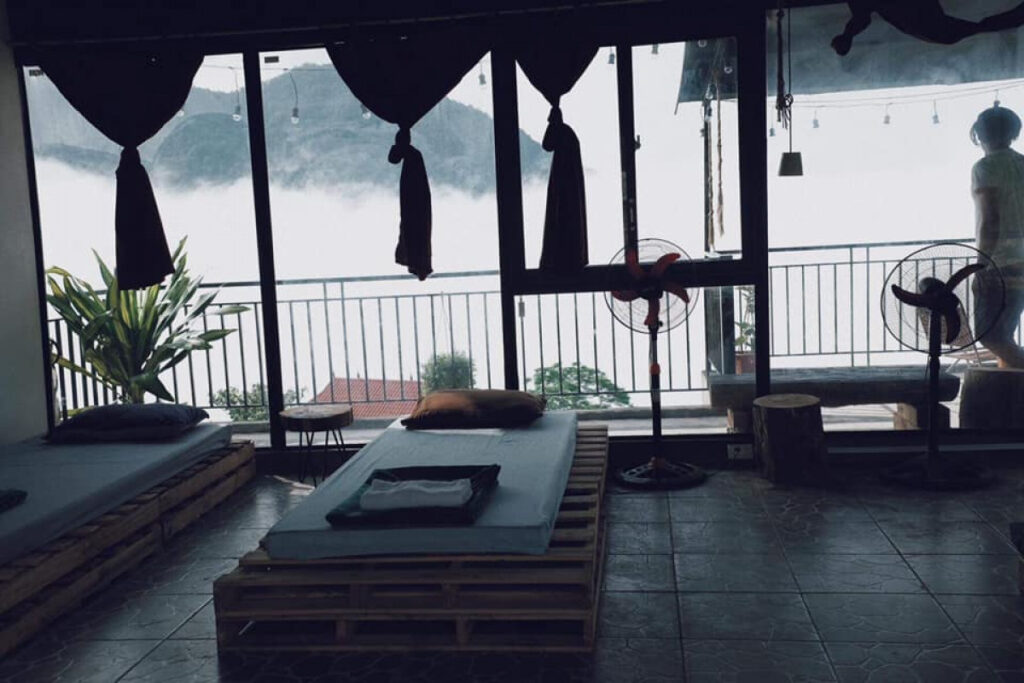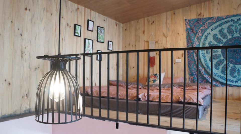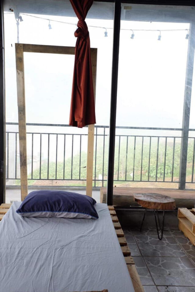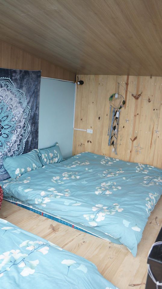 Tầng 2 là phòng ngủ được lát hoàn toàn bằng gỗ thông mộc đem lại mùi hương tự nhiên dễ chịu, phòng ngủ gồm 2 giường đôi view núi.