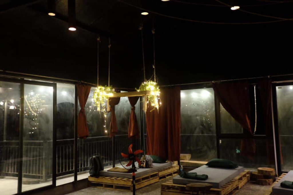 Nhà gồm 2 mặt hoàn toàn bằng kính view núi có sân nướng riêng phù hợp cho nhóm từ 2-6 người