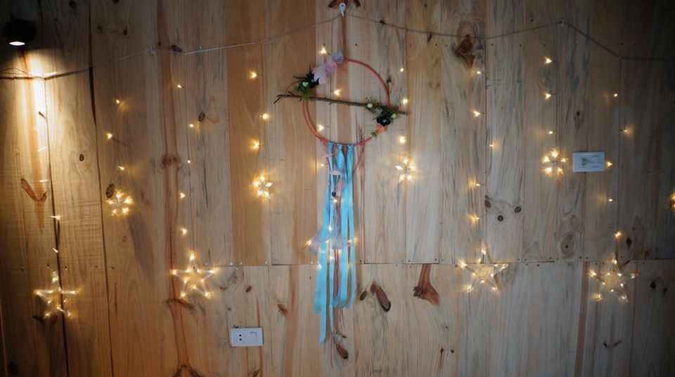 ? Tầng 1 là phòng khách và nhà tắm, tầng 2 là phòng ngủ làm bằng gỗ thông kết hợp với một nửa trần bằng kính giúp ngôi nhà ban ngày ngập tràn ánh sáng tự nhiên, ban đêm bạn sẽ được trải nghiệm cảm giác nằm trên giường tận hưởng bầu trời đầy sao cao và trong của Tam Đảo.