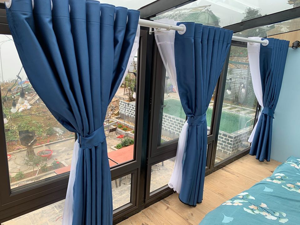 Nhà gồm 2 tầng với 1 mặt hoàn toàn bằng kính view sân nướng, tầng 1 là phòng khách và nhà tắm. Tầng 2 là phòng ngủ bằng gỗ thông với mái nhà một nửa bằng kính giúp bạn dễ dàng tận hưởng bầu trời đêm chưa bị ô nhiễm ánh sáng của Tam Đảo.